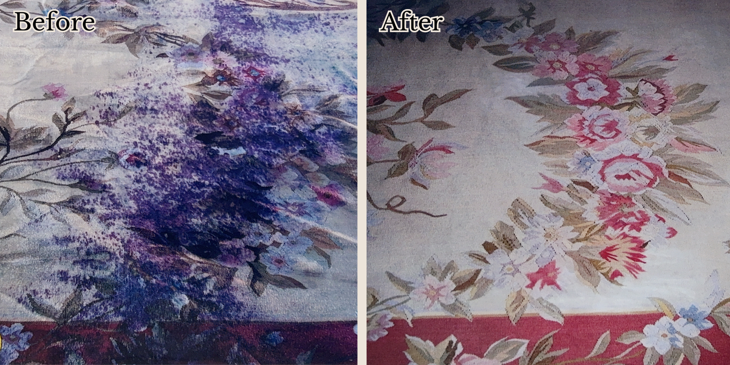 We correct color run, dye bleeding, and fading caused by spills, prior cleanings, or age, and apply protective treatments.
